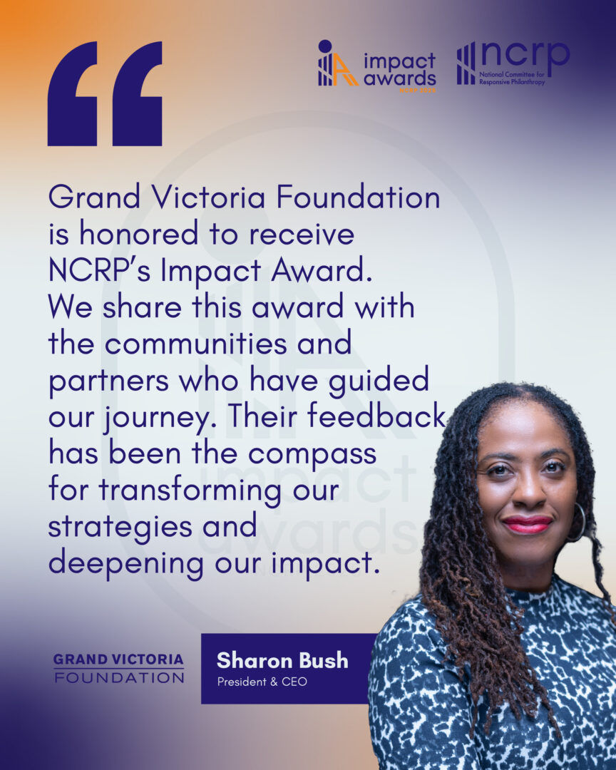 Click here to read more about Grand Victoria Foundation’s work and why they were chosen to be NCRP’s 2025 “Changing Course” Award winner for Incorporating Feedback.