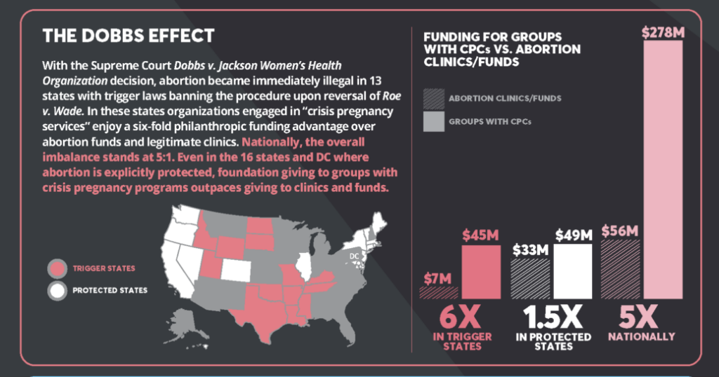 CPCs are not just a threat to abortion access; they are part of a broader opposition infrastructure targeting the full reproductive justice spectrum, particularly in Black, rural and other communities facing systemic disinvestment. As the sector elevated the Black maternal health crisis, CPCs simultaneously positioned themselves as community solutions, expanding gaps left by underinvestment while reinforcing stigma, misinformation and pregnancy outcome control. Addressing CPC harm is essential to protecting abortion access, birth justice and family autonomy and must be funded as core reproductive justice infrastructure.